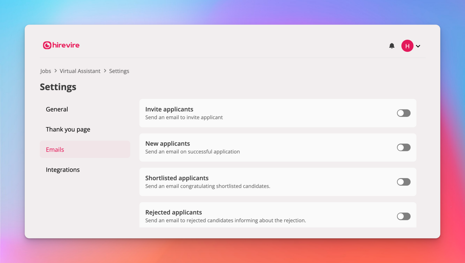 Click on the ⚙️ icon in the top right and choose the settings option - to view the job settings screen