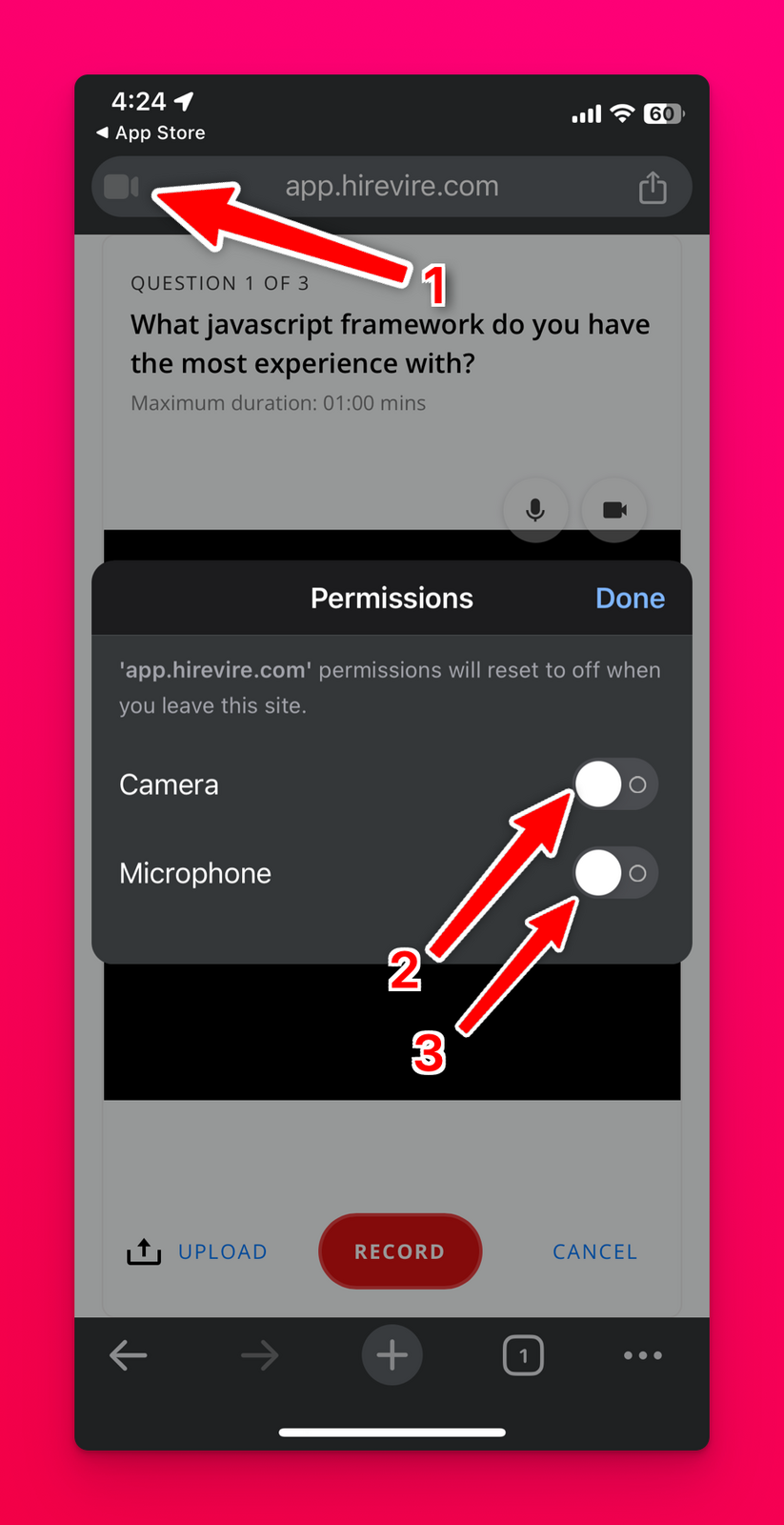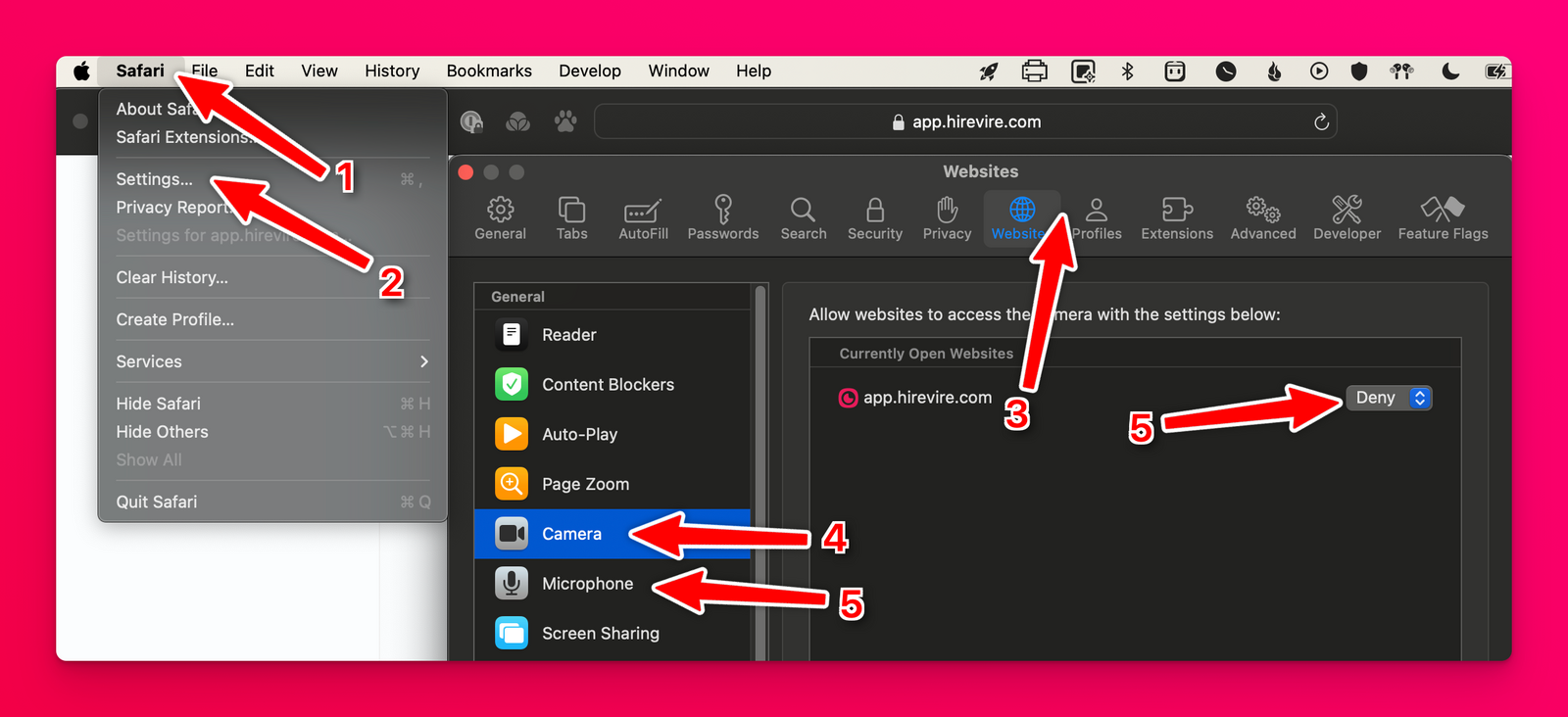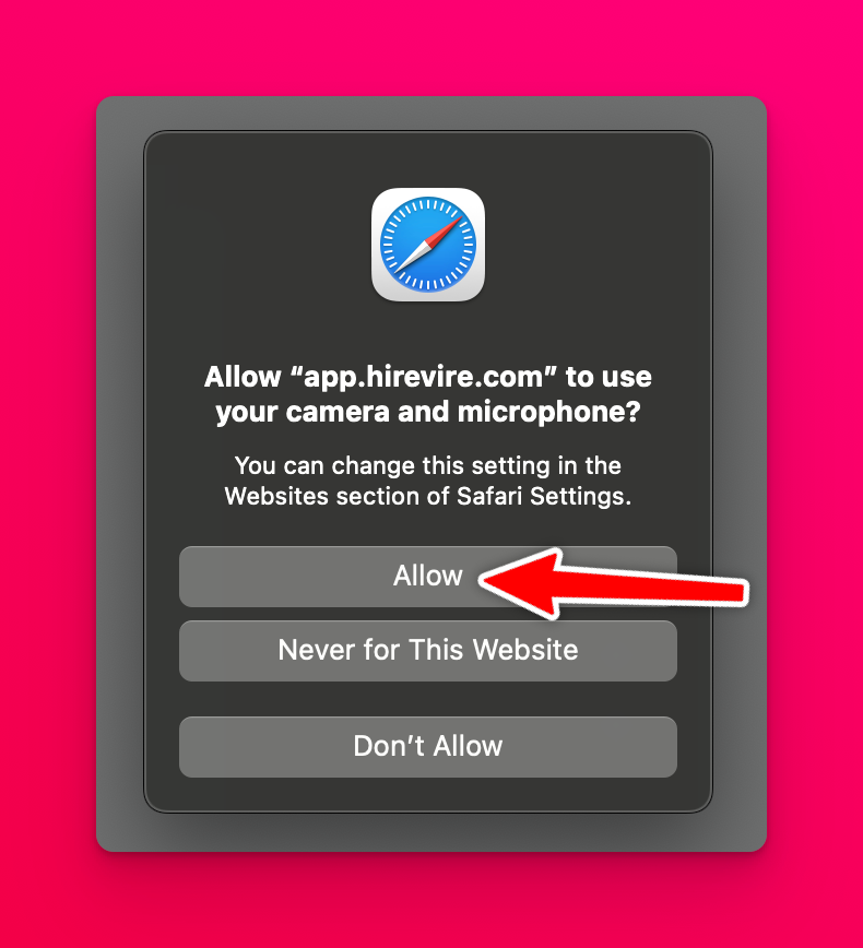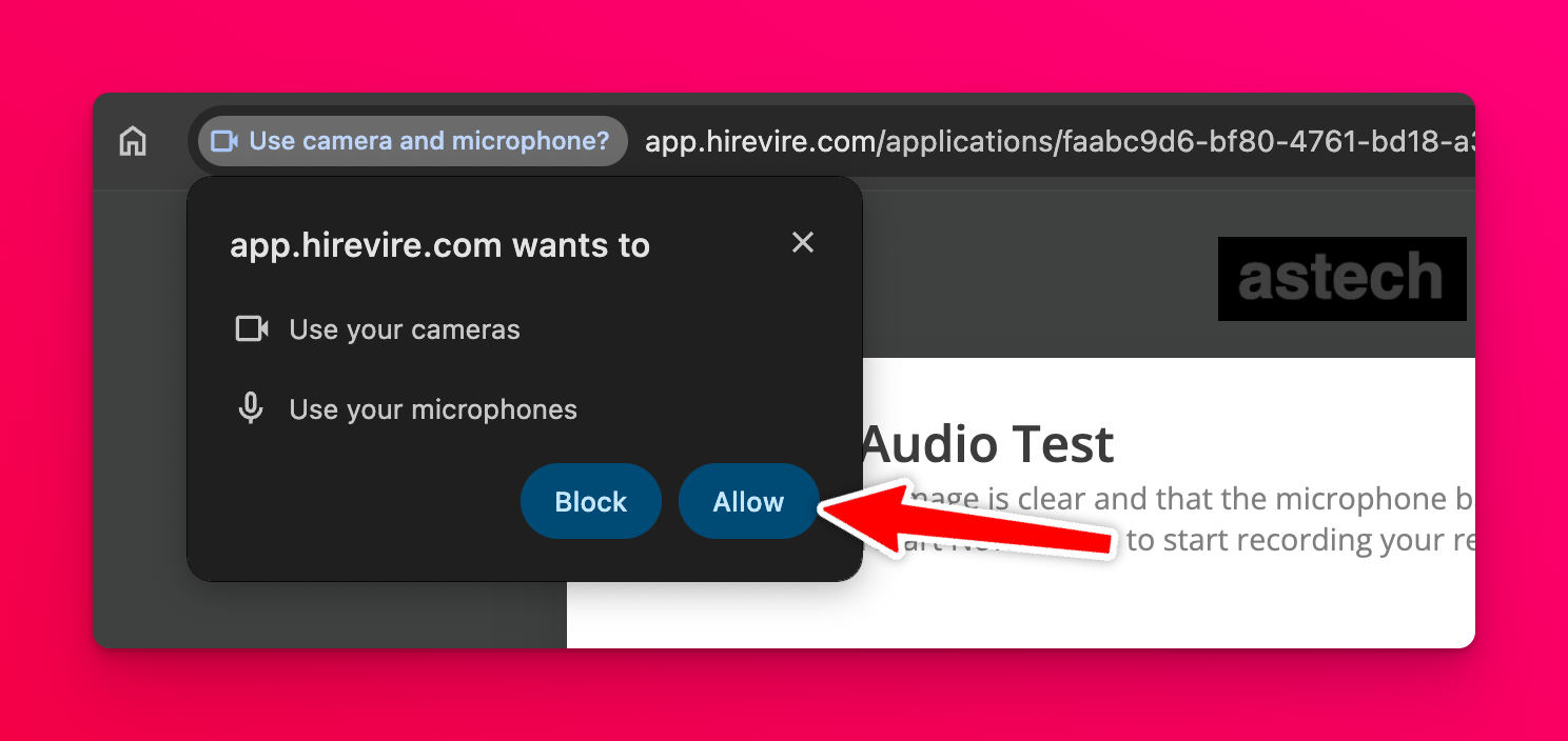 If you see Hirevire under Blocked, tap the site, then enable access to your Camera and Microphone.